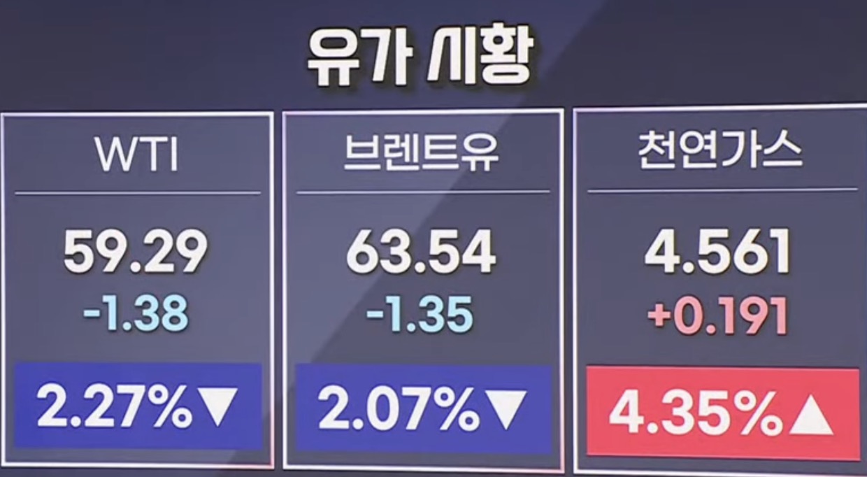 이날 국제유가는 美 우크라전 '종식 시도' 소식 등에 급락. 서부 텍사스산 원유(WTI) 12월 인도분 가격은 전거래일 대비 1.30달러(-2.14%) 하락한 59.44달러에 거래 마감.
