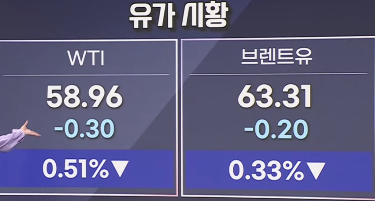 이날 국제유가는 우크라이나 전쟁 종식 기대감 지속 등에 하락. 서부 텍사스산 원유(WTI) 12월 인도분 가격은 전거래일 대비 0.30달러(-0.50%) 하락한 59.14달러에 거래 마감.