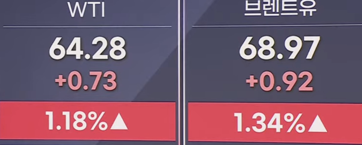이날 국제유가는 미-이란 지정학적 불안감 지속 속 강세. 서부 텍사스산 원유(WTI) 3월 인도분 가격은 전거래일 대비 0.81달러(+1.27%) 상승한 64.36달러에 거래 마감.