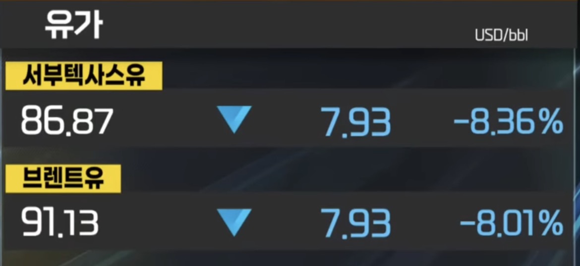 이날 뉴욕상업거래소에서 4월 인도분 서부텍사스산원유(WTI) 가격은 전장대비 11.32달러(-11.94%) 폭락한 배럴당 83.45달러에 마감했음. 이는 2022년 3월 이후 하루 최대 낙폭으로, 지난 2월27일 이후 8거래일 만에 하락임.