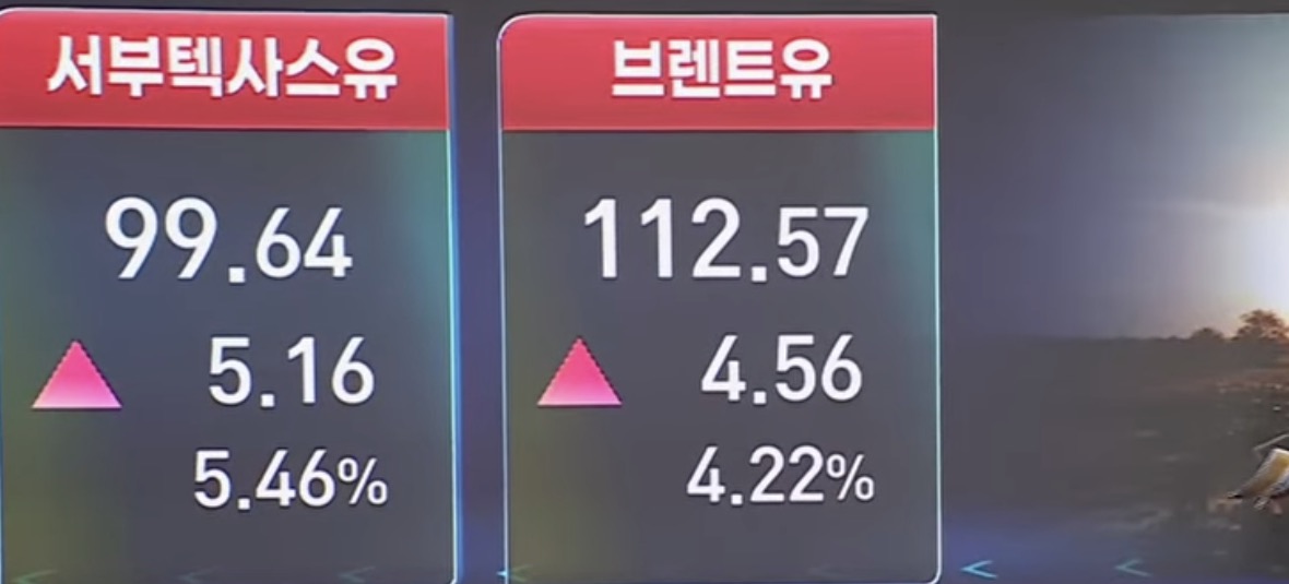 이란 전쟁 장기화 우려 속 중국 선박 호르무즈 해협 통과 저지 소식 등에 국제유가는 폭등세를 이어갔음. 뉴욕상업거래소에서 5월 인도분 서부텍사스산원유(WTI) 가격은 전장 대비 5.16달러(+5.46%) 폭등한 배럴당 99.64달러에 마감했음. 런던ICE선물거래소에서 국제유가 기준유인 브렌트유 5월물은 4.2% 급등하며 배럴당 112.57달러로 치솟았음. 이는 2022년 7월 이후 약 3년 8개월 만에 최고 수준임.